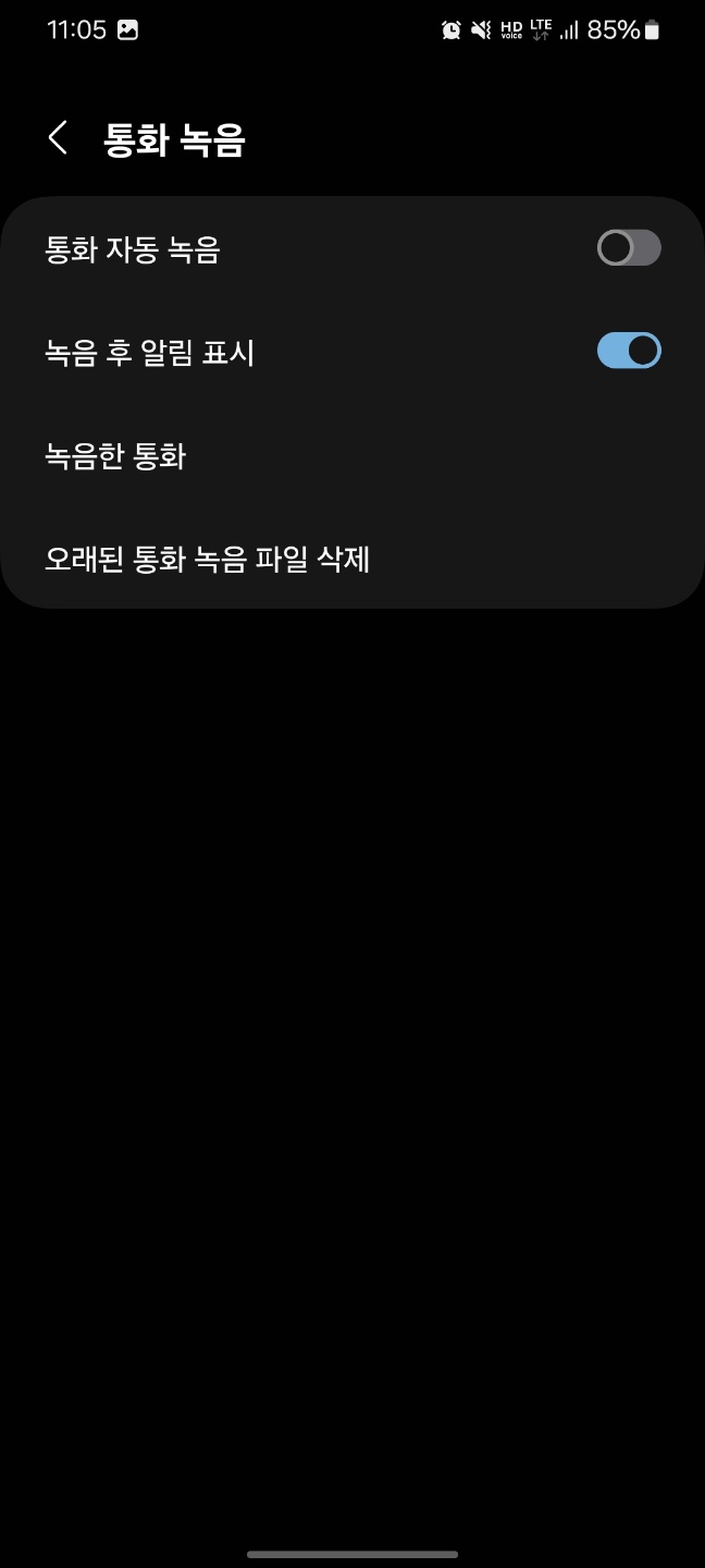 전화 앱 > 우측 상단 점 세 개 > 설정 > 통화 녹음
