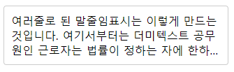 <span class="multiline-ellipsis">여러줄로 된 말줄임표시는 이렇게 만드는 것입니다. 여기서부터는 더미텍스트 공무원인 근로자는 법률이 정하는 자에 한하여 단결권·단체교섭권 및 단체행동권을 가진다. 한 회계연도를 넘어 계속하여 지출할 필요가 있을 때에는 정부는 연한을 정하여 계속비로서 국회의 의결을 얻어야 한다.</span>